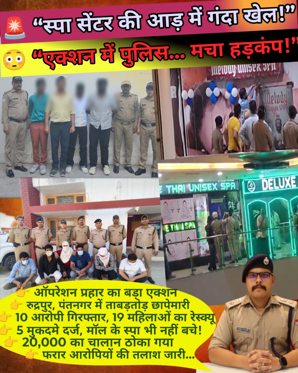 एसएसपी अजय गणपति के निर्देशन में चलाए गए “ऑपरेशन प्रहार” के तहत अब तक की सबसे बड़ी संयुक्त कार्रवाई सामने आई हैं। जहां स्पा सेंटरों की आड़ में चल रहे अनैतिक देह व्यापार का पुलिस ने बड़ा भंडाफोड़ किया है…